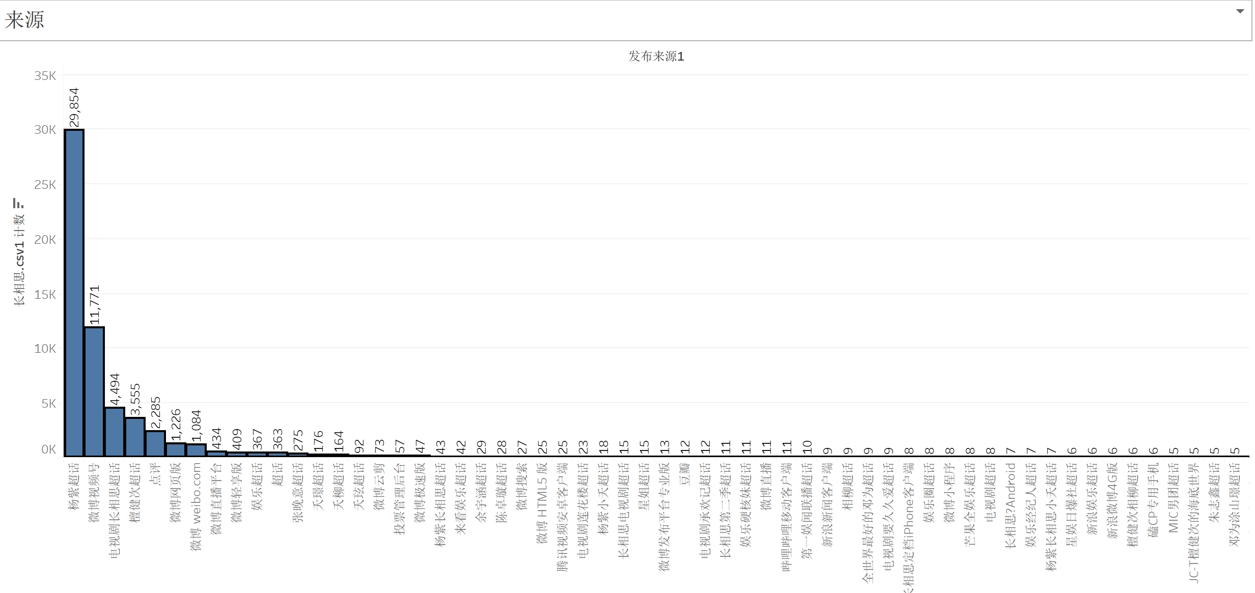 来源:来自主演明星超话的相关微博最多,其次是微博视频号和电视剧超话(这可能是在播放期间,大量关于电视剧情节的短视频剪辑为其进行了营销)。此外还有来自于其他不想关的明星超话的(猜测是对比拉踩或是引战)。
